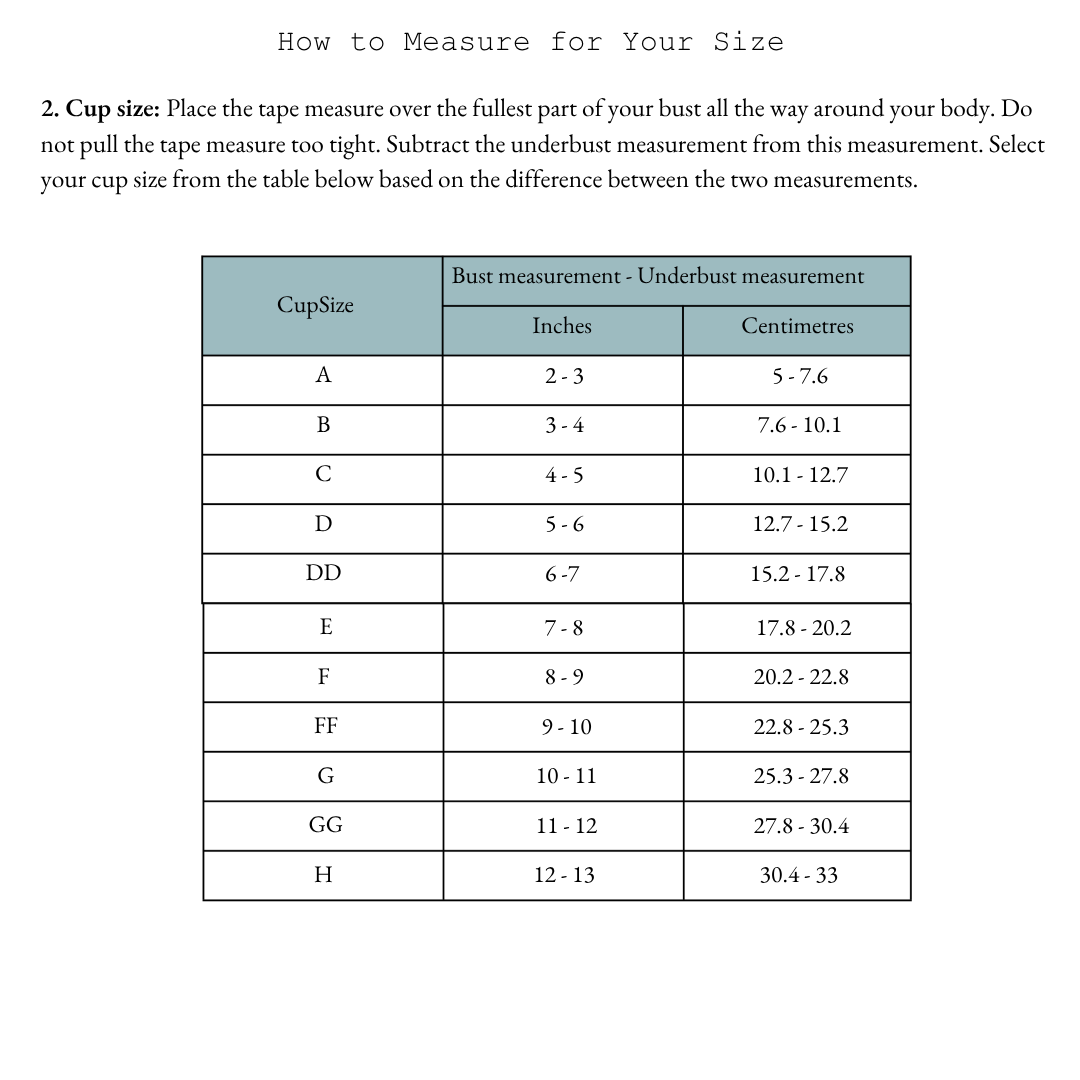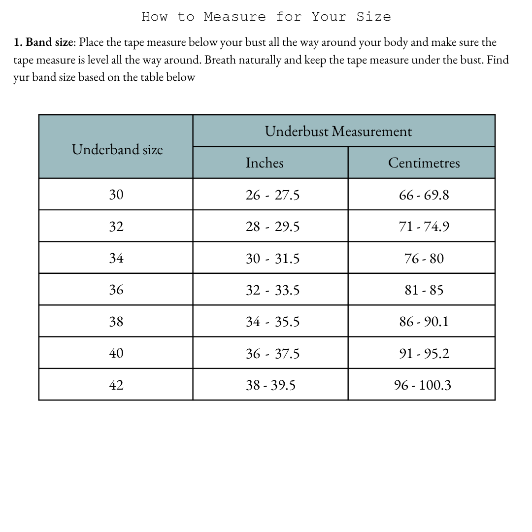 ✄ Band sizes: 30 – 42, Cup sizes: A – DD (Core Range)